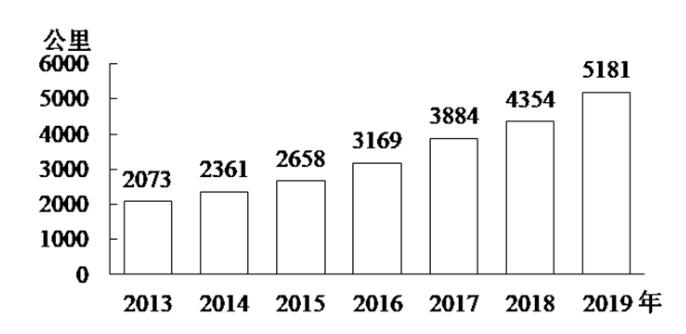 2013~2019年全国地铁运营线路长度