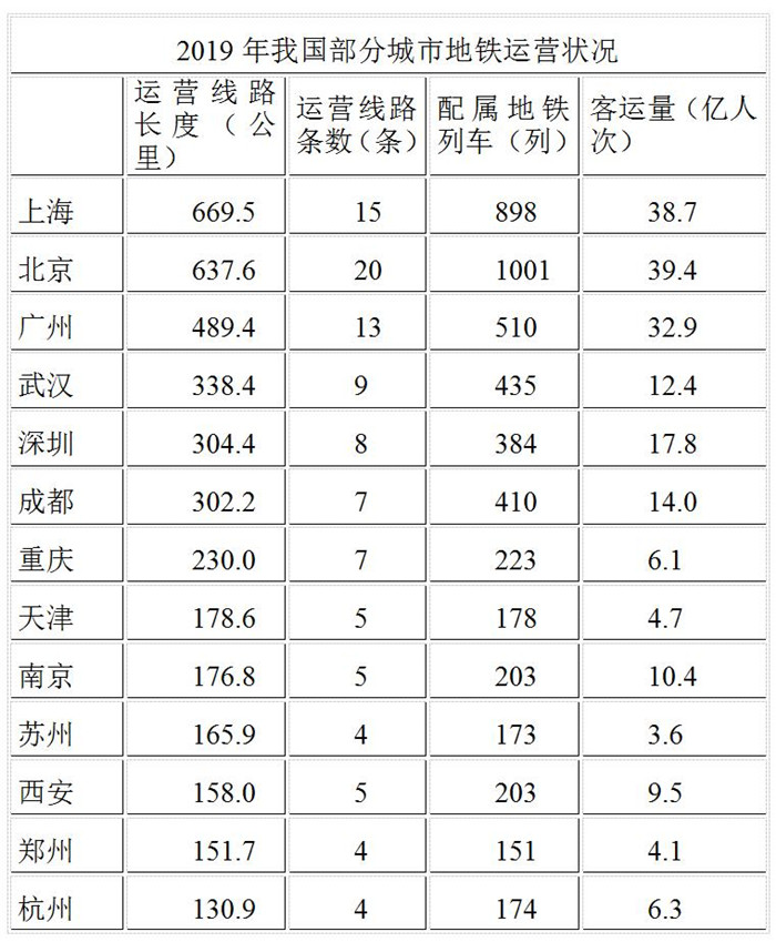 2019年末,我国城轨交通配属地铁列车6178列,全年实现地铁客运量227.76亿人次。