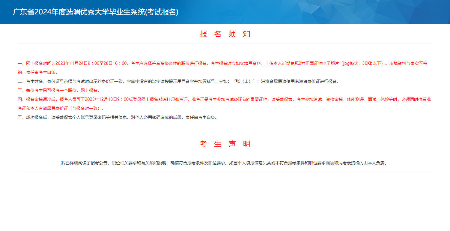 我已详细阅读了招考公告、职位相关要求和有关须知说明,确信符合报考条件及职位要求。如因个人填报信息失实或不符合报考条件和职位要求而被取消考录资格的由本人负责。