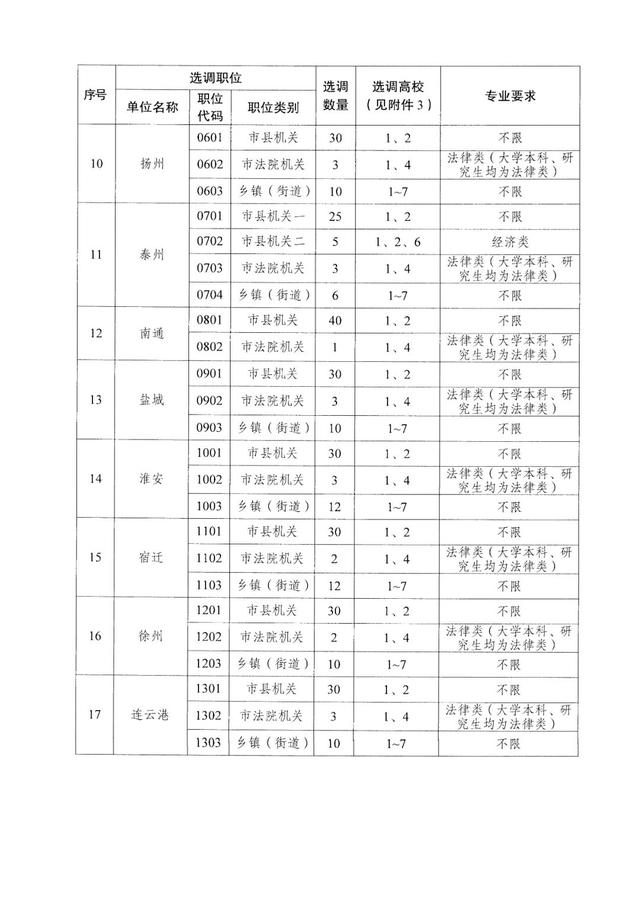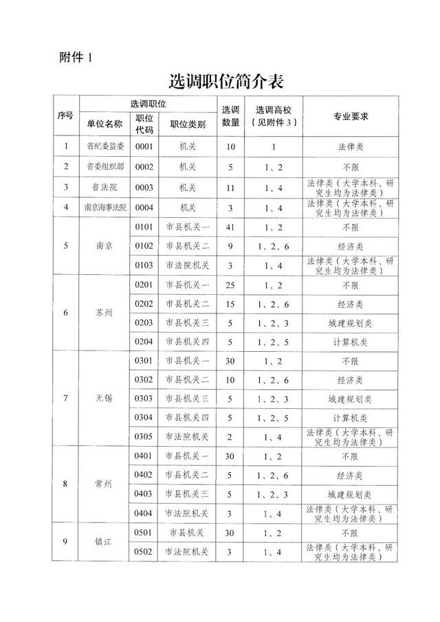 优先选调经济金融、信息技术、智能制造、城乡建设、社会治理、生态环境、公共卫生等大类紧缺专业人才。每职位选调数量男女保持平衡。选调高校名单见附件。
